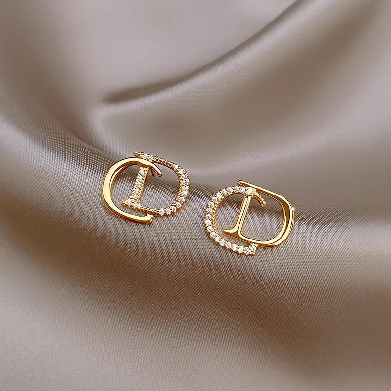 Korean Style S925 Silver CD Letter Stud Earrings - Elegant, Unique Design for Women