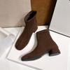 Winter Street Style Women Ankle Boots Elegant Square Toe Low Heel Shoes Female Vintage Stretch Slim Short Booties