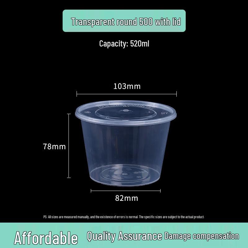 Model500ml Round Clear, 50 Sets with Lid, Non-Microwaveable