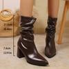 Luxury Brand High Heels Women's Boots Pointed Toe Sexy Shoes Winter Dress Pumps Fashion Pleated Leather Chelsea Boots Mujer