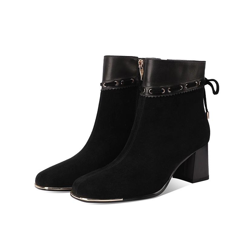 Metal Collision Avoidance Square Toe Fashion Booties Fall New Suede Side Zip Non-Slip Heels