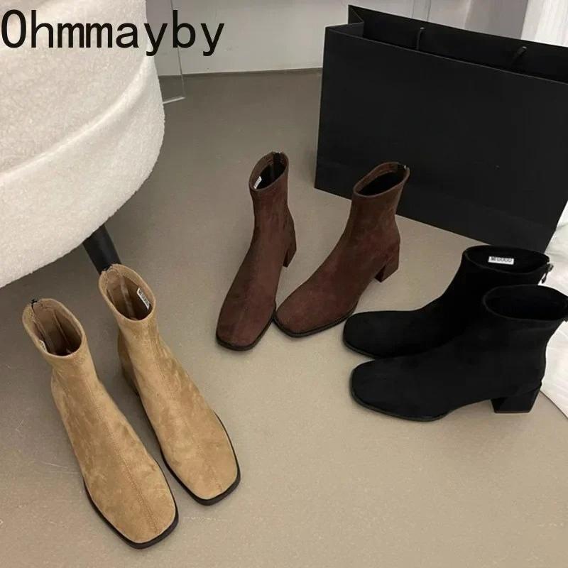 Autumn Winter Fleeces Women Sock Ankle Boots Fashion Square Heel Ladies Elegant Keep Warm Short Booties Women's Footwear