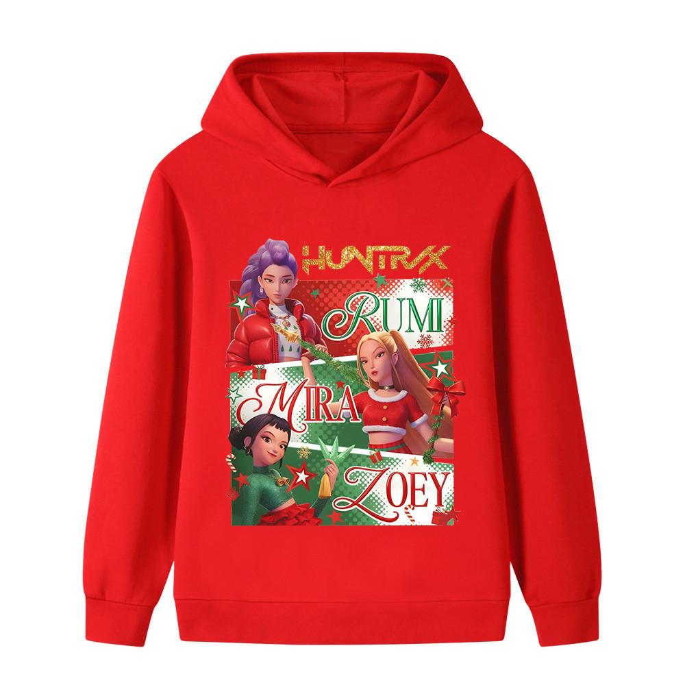 B1264 Kids Boys Girls Christmas New Year Kpop Rumi Zoey Mira Print Long Sleeves Hoodie