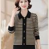 Autumn and Winter Loose Lapel Women's Western Style Striped Knitted Sweater Long-sleeved Bottoming Shirt Top