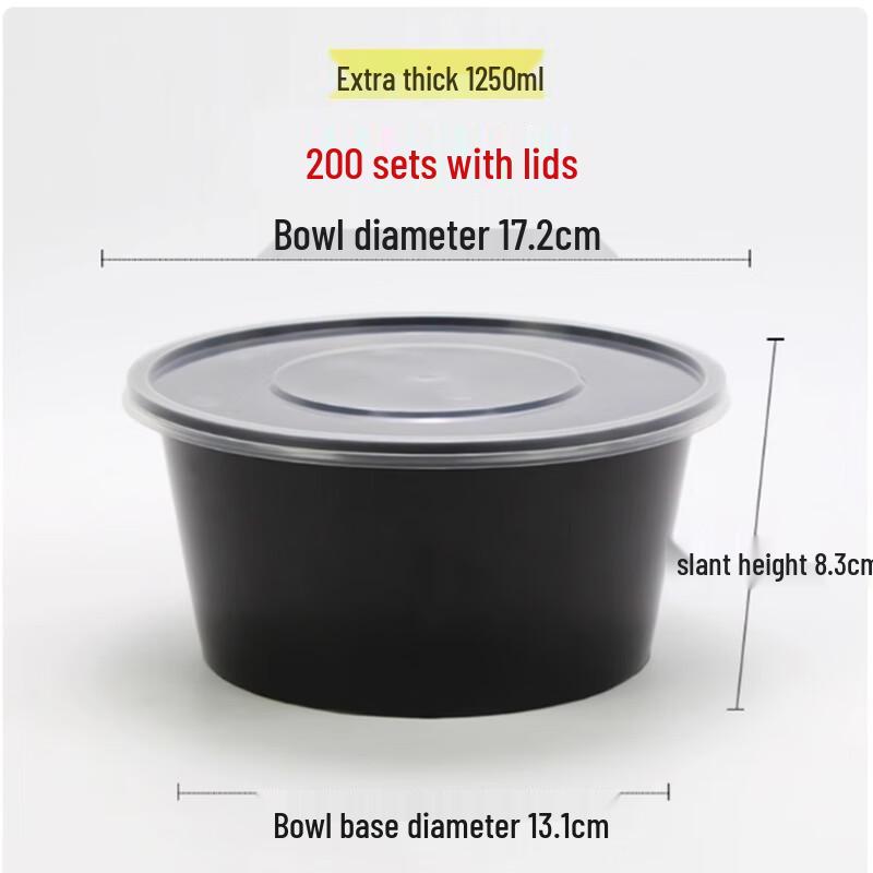 Model1250ml Black Round Bowl with Transparent Lid (200 sets)