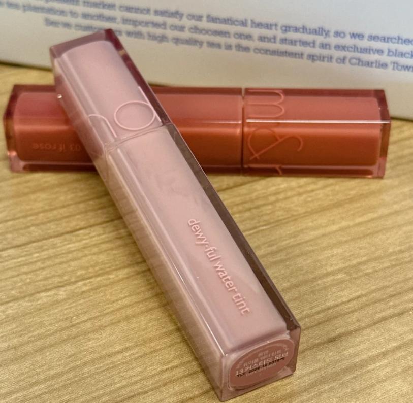 rom&nd #03 Sunset Rose is a benchmark product with highly balanced color, texture, and finish. Its texture is moisturizing and lightweight, not heavy or sticky, providing a comfortable application. As a lip tint, it has excellent staying power. Even after drinking or eating, the base color remains, giving a naturally healthy look. The color is bright and uplifting, very friendly for yellow-toned skin, making it look fairer and suitable for daily use. On fair skin, it appears even more delicate. On the lips, it gives a glossy, plump effect, creating a 'juicy and tender' look. Fresh for spring and summer, warm for autumn and winter, it is a 'universal color' suitable for all seasons.
