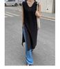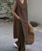2025 Summer Sleeveless V-neck Linen Cotton Over-the-Knee Dress for Women - Solid Color, Simple Slit Design