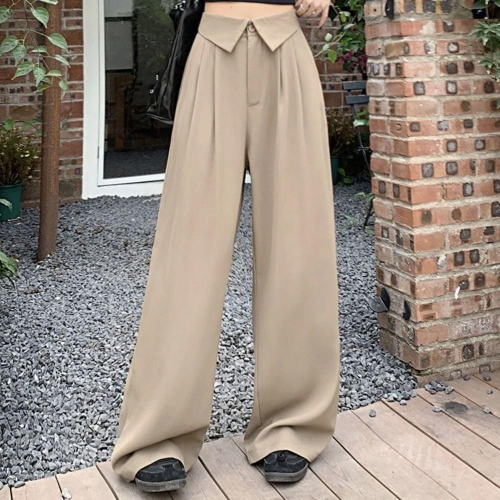 Loose Casual Pants Women Workout Trousers Wide Leg Pants Retro Flip Up Suit Pants Female