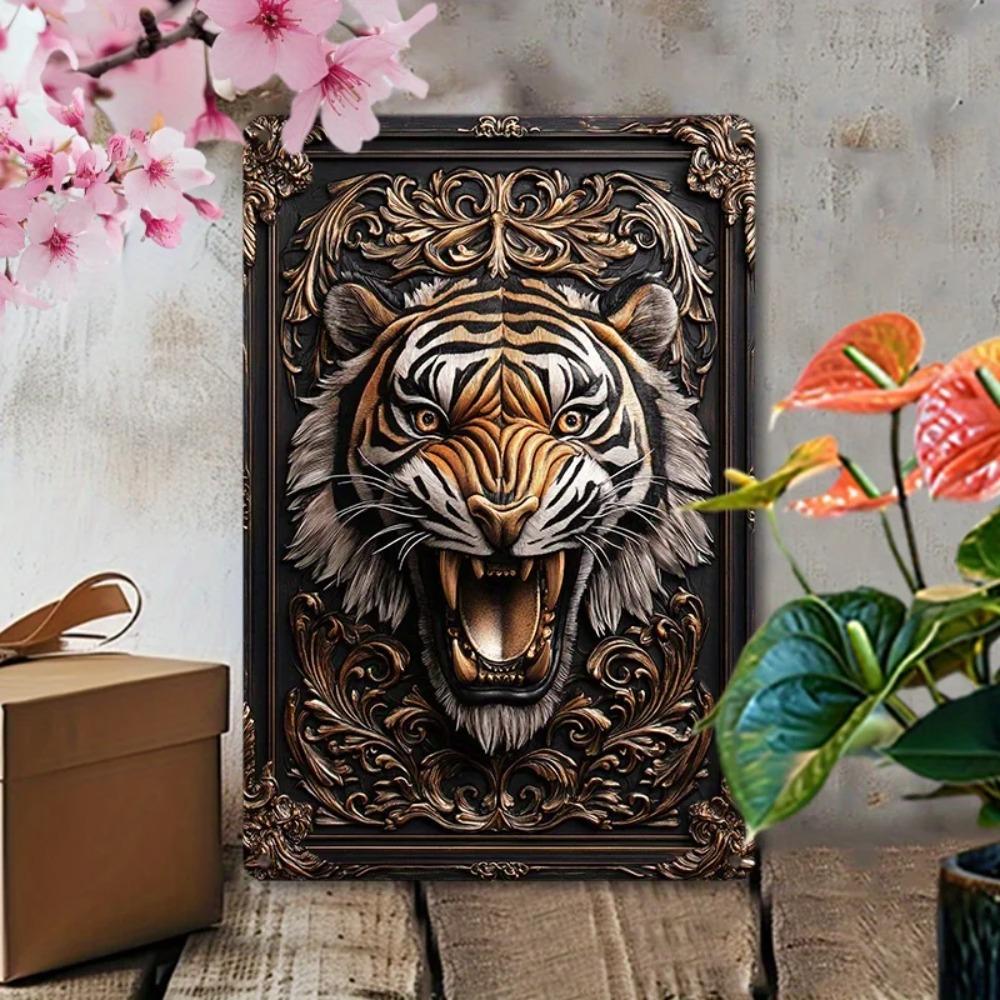 2DTigerAluminumArt Aluminum Tiger Wall Art - 2D Embossed Metal Sign, Weather Resistant, Decorative Poster for Home/Office