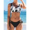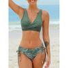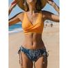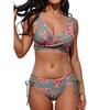 Women Swimwear Cross Pleated Backless Lace Up Bikini 2026 New Beach Two Piece Bathing Suit Vintage Printing Bikini Set