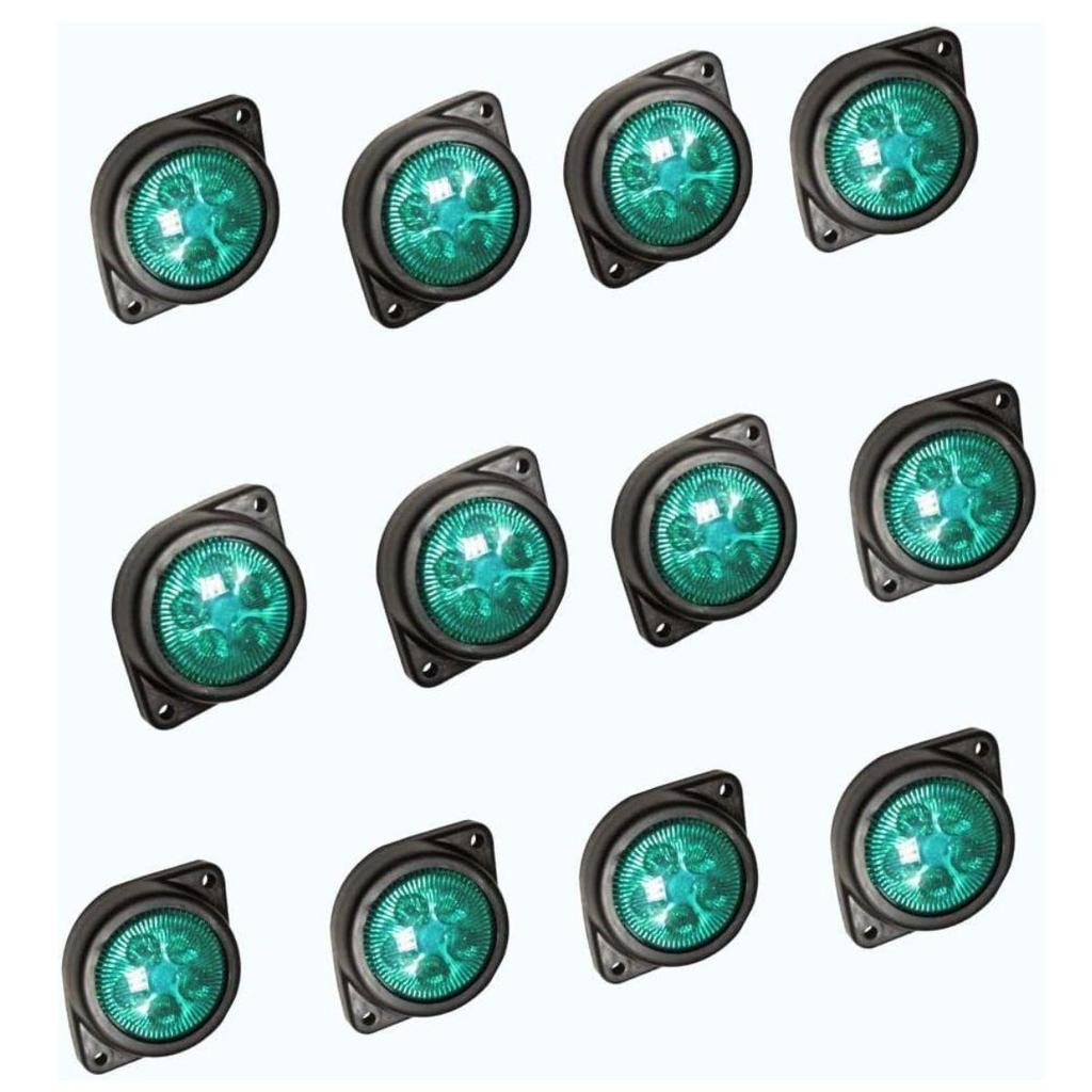 APSMOTIV LED Outline Side Marker Lights 24V Clearance Lamp for Truck Trailers Bus and , Color Green, Pack of 12