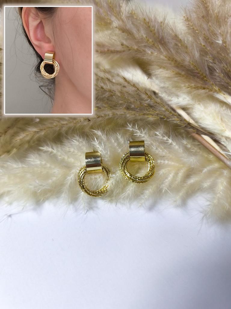 New Sweet and Simple Temperament Earrings, Hollow Circle Multi-layer Winding Stud Earrings
