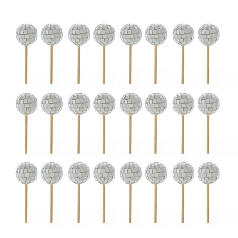 24 Pieces Reflective Sphere Cake Toppers for Party Decoration Decorative Cupcake Inserts Accessories Cake Ornament