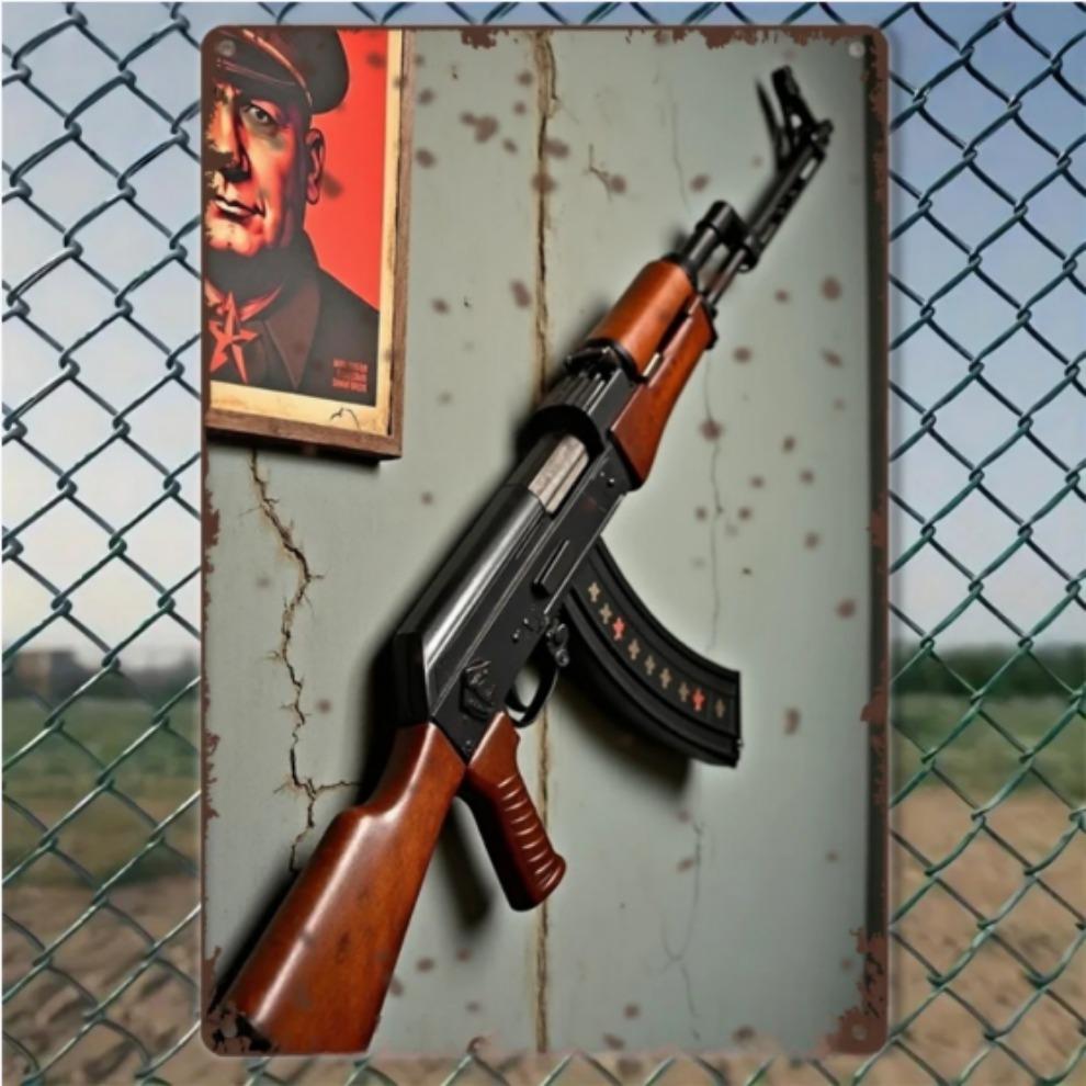 1PC 2D Flat True Man's Toys 8*12inch Metal Sign Retro Military Leader with AK47 Wall Art Decor