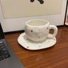 Korean Ins Style Hand-painted Love Ceramic Cup and Saucer Couple, Underglaze Color Irregular Coffee Cup and Saucer Afternoon Tea
