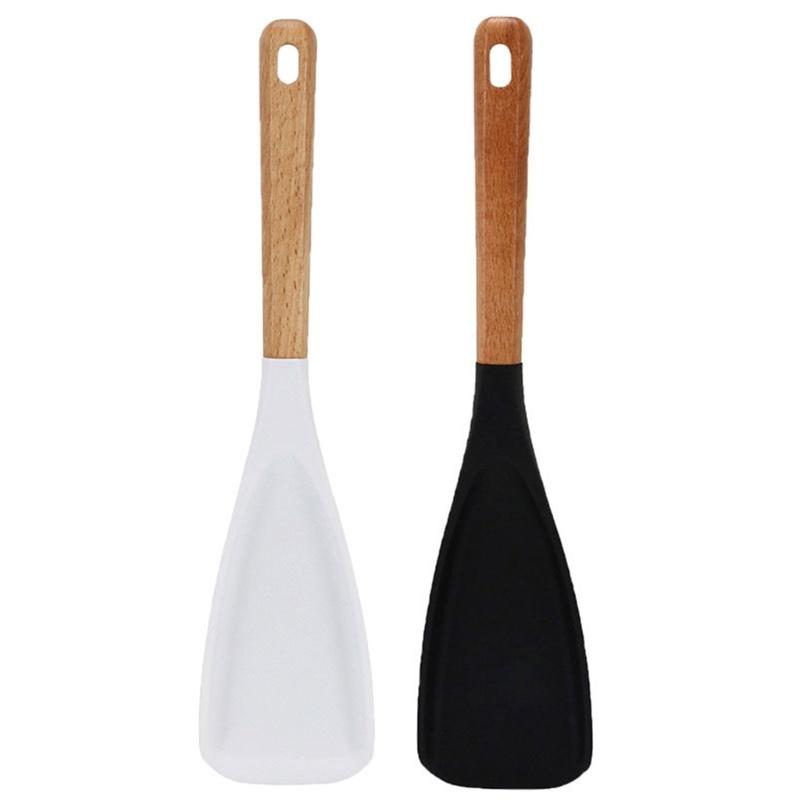 The ergonomic wooden handle ensures slip resistant grip during stirring, while the smooth brims silicone head efficiently scoops and mixes ingredient without damaging pots.