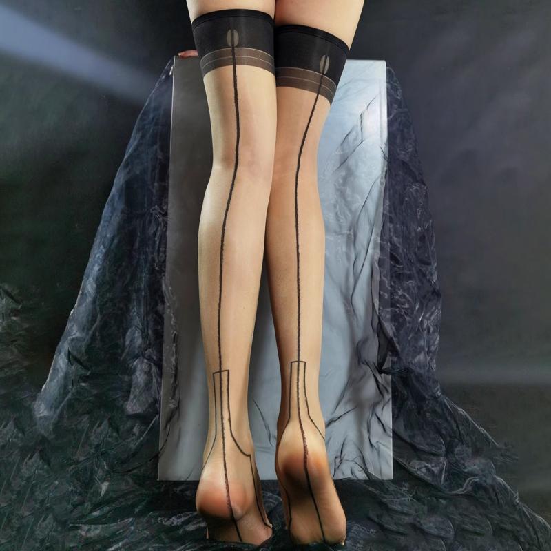 Oil Shiny Cuban Heel Back Seam Thigh High Stockings Women Sexy Transparent Underwear Elastic Nylon Socks Party Hosiery