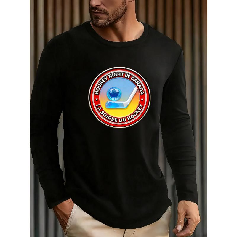 Hockey Print Polyester Long Sleeve T-Shirt Soft Breathable Casual Daily Top
