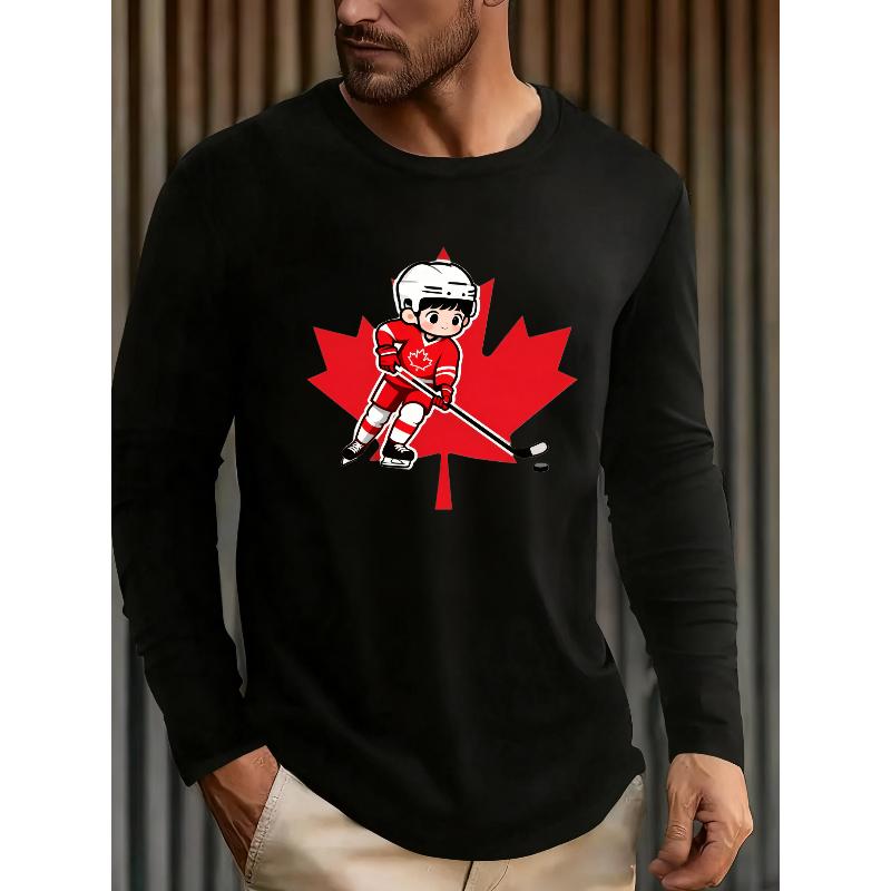 Polyester Men's Hockey Print Long Sleeve T-Shirt Moisture Wicking Comfortable Gym Top