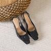 Fashion Korean Style Fashion Square Head Patent Leather Sandals with Shallow Mouth Square Buckle Women Heeled Sandals Zapatos De Mujer