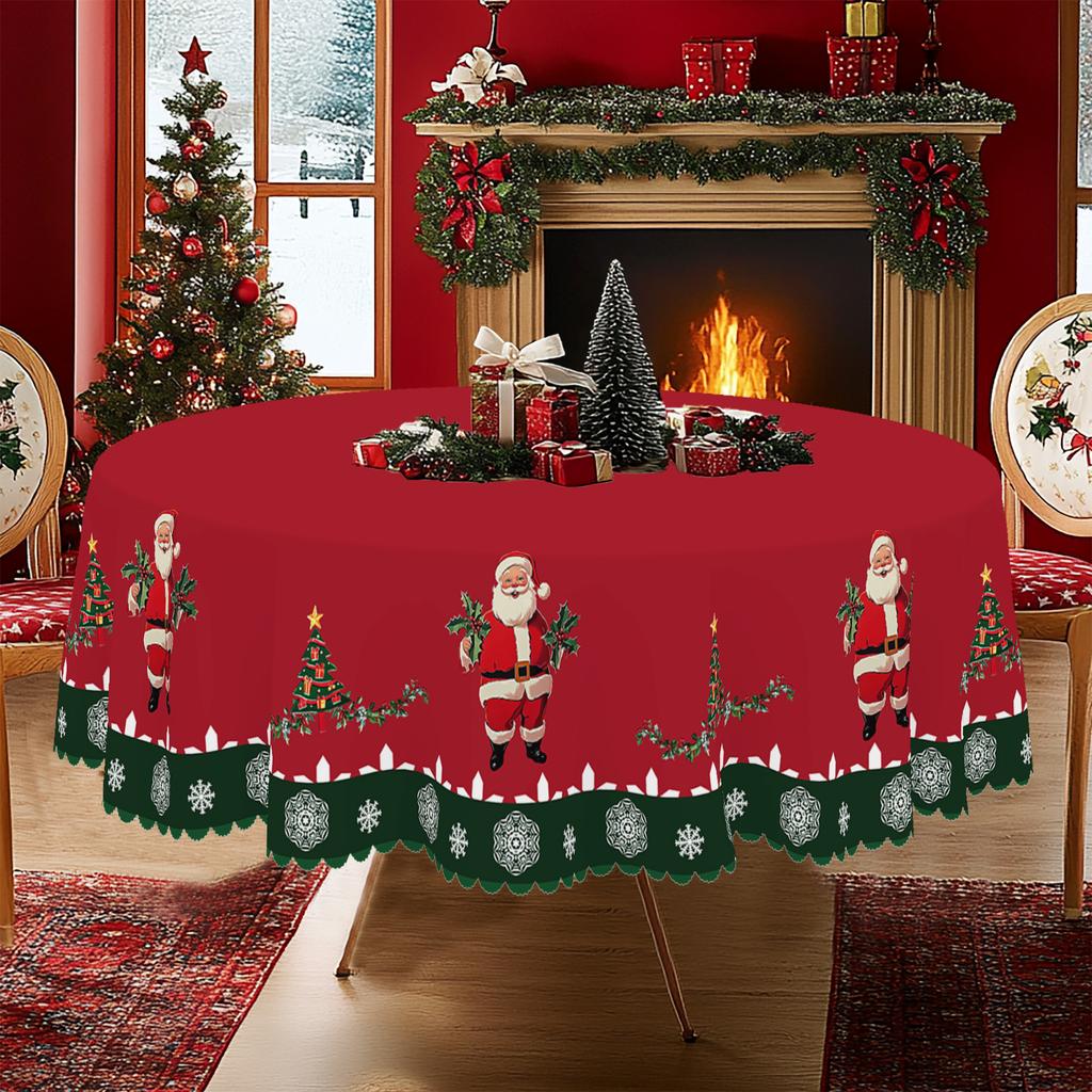 1 Piece Christmas Round And Square Tablecloth, Various Sizes, Cute Santa Claus And Snowflake Green Tablecloth Holly Berry Pattern Design Tablecloth Fo