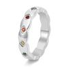 Korean Style Titanium Couple Rhombus Grid Ring with Rainbow Inlaid Diamonds and 18K Gold Fragrant Style.