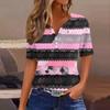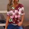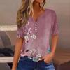 Women's T Shirt Print Button Short Sleeve Daily Weekend Fashion Basic V-Neck Regular Top
