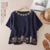 Summer New Fashion Casual Retro Style Embroidered Pullover Cotton Linen T-shirt
