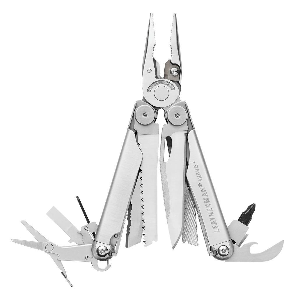 18 Functions: Needle-nose Pliers, Regular Pliers, 154cm Replaceable Wire Cutter, 154cm Replaceable Hard Wire Cutter, Electrical Crimper, 420HC Straight Blade Knife, 420HC Serrated Blade Knife, Saw, Scissors, Woodworking/Metal File, Diamond-Coated File, Large Bit Driver, Small Bit Driver, Flathead Screwdriver (M), Ruler (19cm/8 inches), Bottle Opener, Can Opener, Wire Stripper