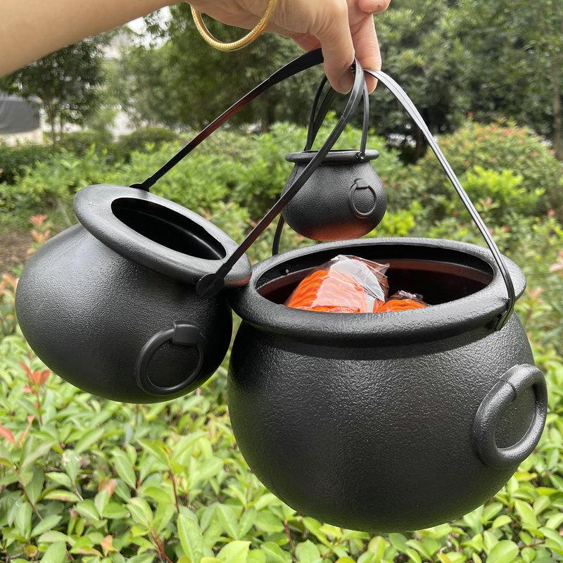 Halloween Witch Cauldron: Black Flame Pot Candy Bucket Ornaments