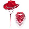Blingbling Cowgirl Hat and Scarf Sequined Brim Hat and Tasseled Scarf