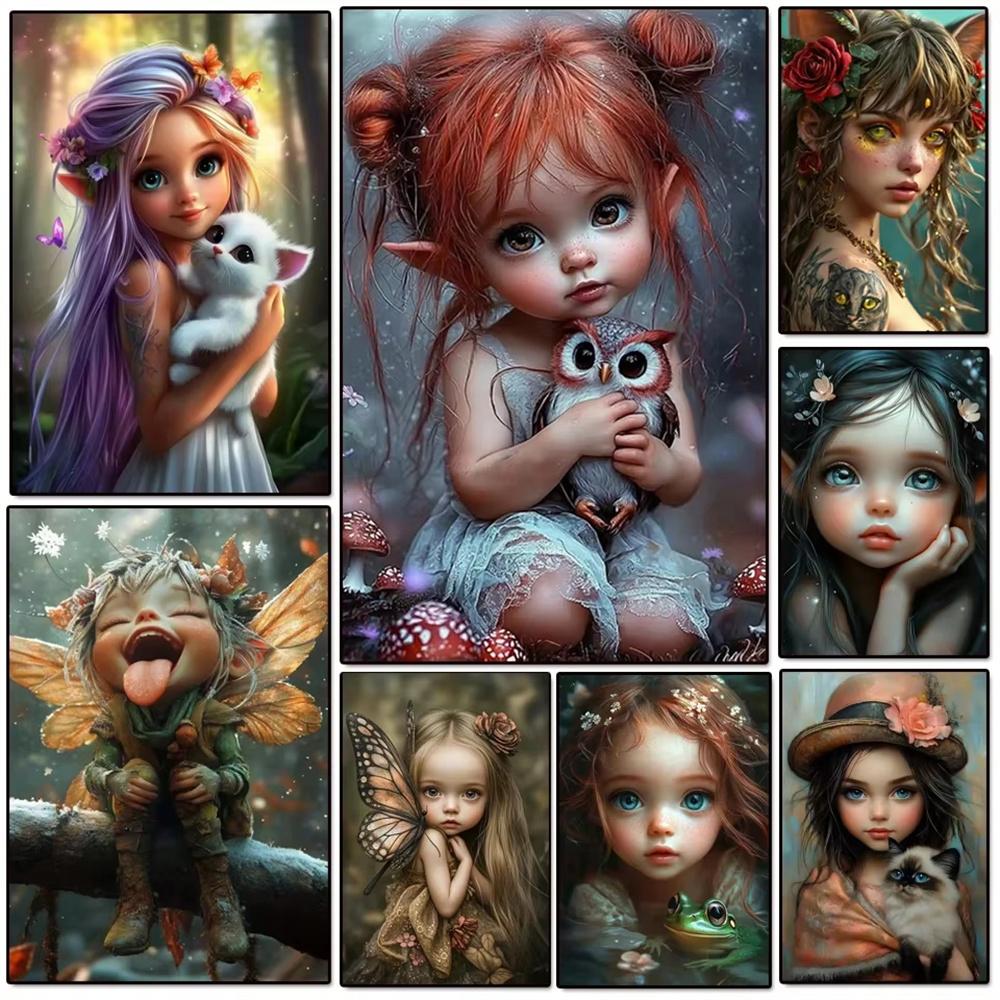 5D Diamond Painting Girl Owl Frog Cat Butterfly Picture Full Diamond Mosaic Elf Embroidery Cross Stitch Kits Art Home Decoration