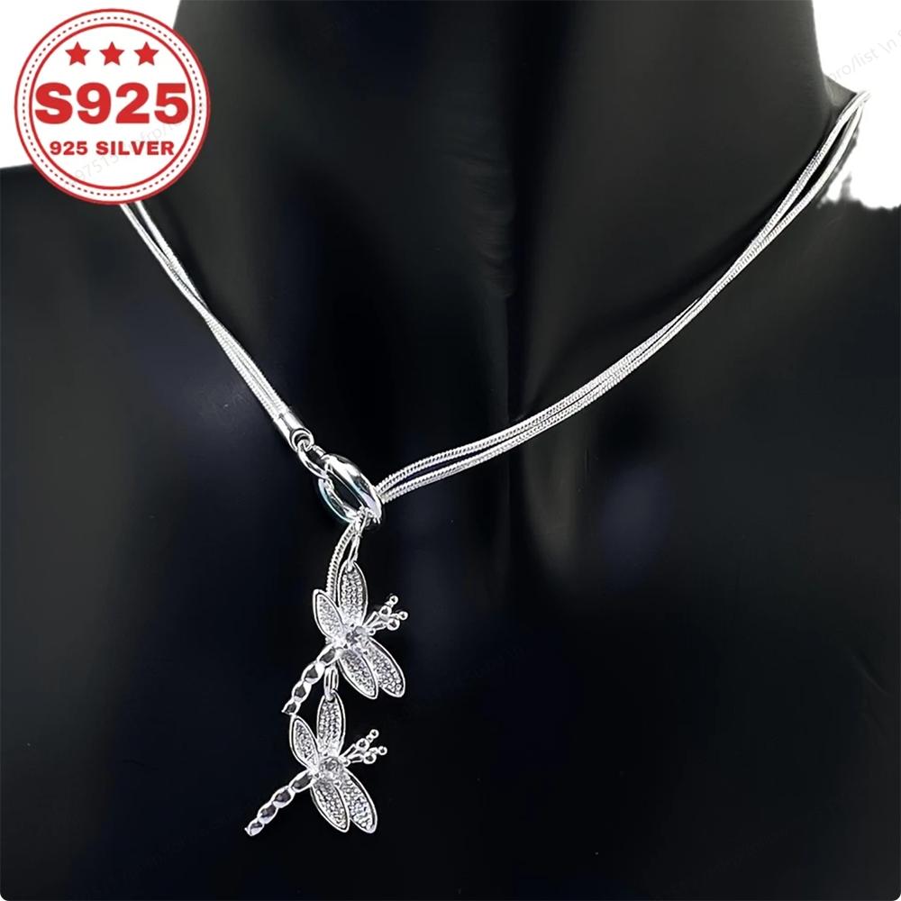 Copper Double Dragonfly Pendant Necklace, Snake Bone Chain Necklace, Fashion Accessory