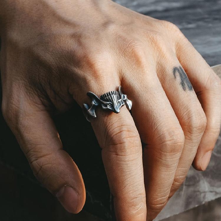 Vintage Gothic Skull Rings Unique Men's Dainty Goth Skull Rings Silver Black Retro Punk Fashion Rings Statement