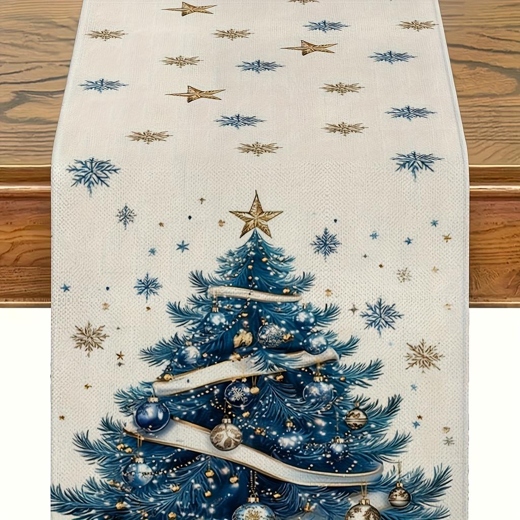 Merry Christmas Xmas Trees Linen Table Runner Party Decor Winter Xmas Balls Snowflakes Dining Table Runners Navidad Decorations