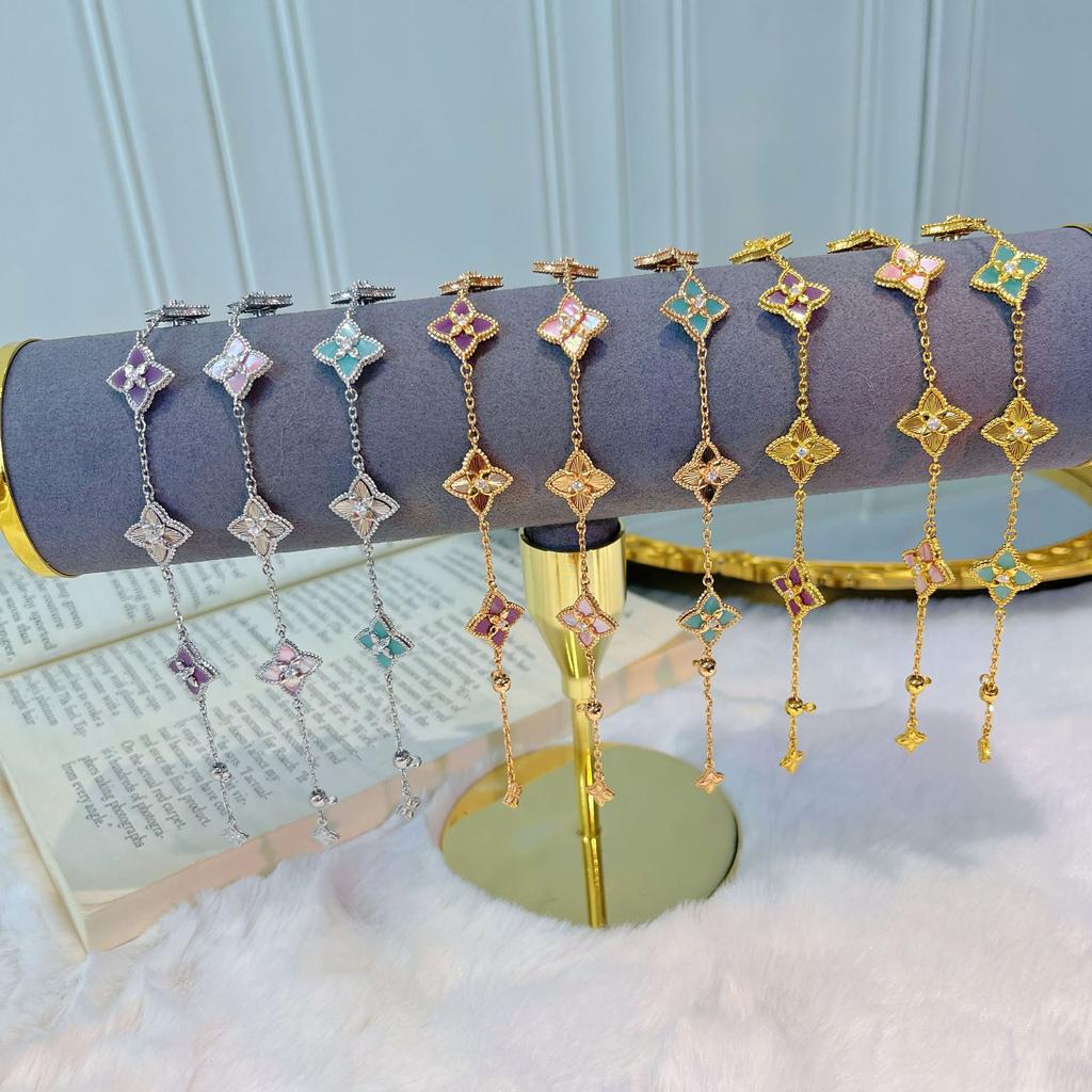 Light Luxury Powder Shell Purple Chalcedony Laser Four-Leaf Clover Five-Flower Bracelet Retro Court Style Sweet Temperament Necklace