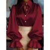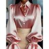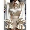 New Elegant Commuter Puff Long Sleeve Lapel Satin Womens Shirt Casual Loose Office Blouse New Lapel Simple Fashion Solid Color Tops