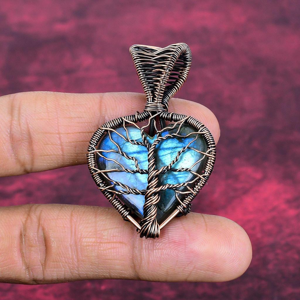 Tree Of Life Labradorite Gemstone Pendant Copper Wire Wrapped Handmade Pendant Designer Jewelry
