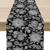 Summer Blue Floral Swirled Pattern Linen Table Runner Dresser Scarf Table Decor Vintage Farmhouse Table Runners Home Party Decor