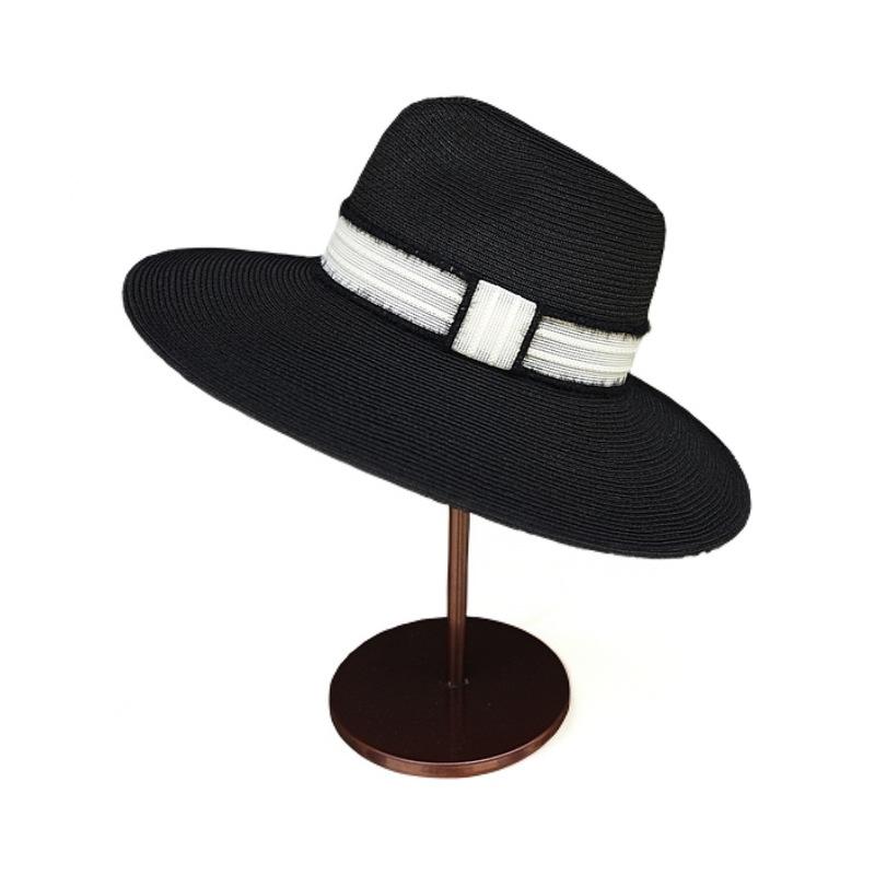 French Retro Black Big Brim Panama Jazz Top Hat Women'S Summer Vacation Beach Sunshade Sun Protection Japanese Straw Hat
