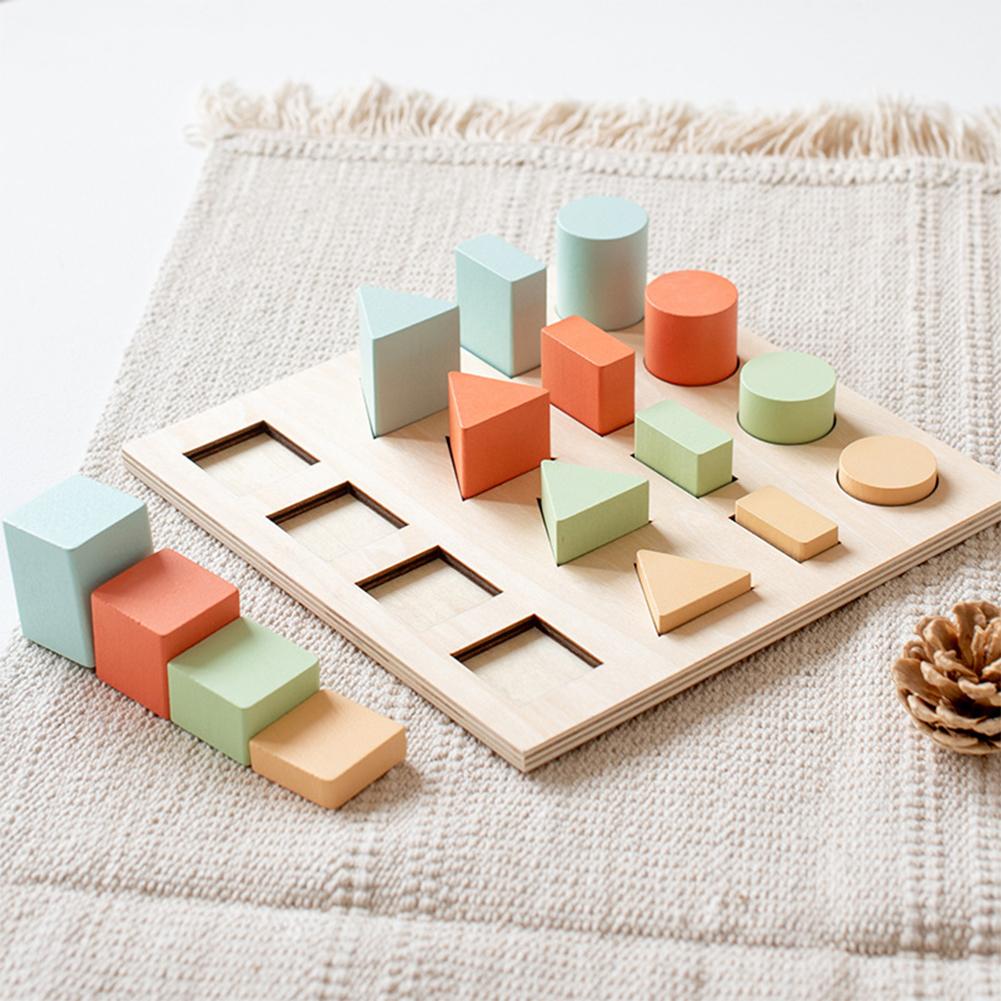Kids Wooden Shape Puzzle Toy Geometric Shape Color Matching Cognition Board Gifts For Girls Boys