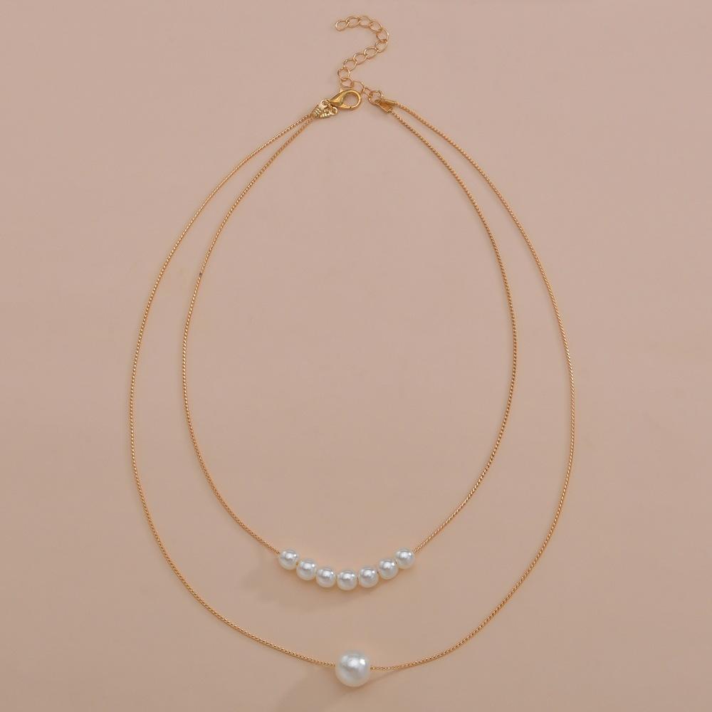 Commuter Ins Wind Double Stacked Pearl Necklace Gentle Multi-layer Pendant Necklace Metal