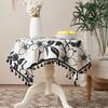 Cotton And Linen Small Fresh Navy Blue Small Flower Round Tablecloth Household Living Room Homestay Decoration Fringed Tablecloth