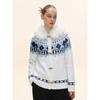 Shiyiyue Detachable Fur Collar Knit Sweater for Women, Autumn and Winter, Horn Button, Color-Blocking, Christmas Outfit, Lazy Loose Sweater