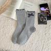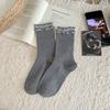 Socks Double Needle Bow Medium Tube Socks Fashion Letter Cloth Label Lace Stacking Socks Gray Socks Trendy Socks