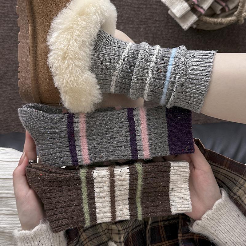 Wool Socks Children'S Stacking Socks Season Warm Thickened Retro Striped Stockings Tide Idea Yarn Tube Socks