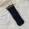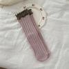 Contrasting Color Fungus Edge Socks Women'S Style Retro Sweet Color Matching Double-Layer Luo Kou Pure Cotton Crimped Medium Tube Socks