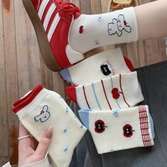 White Socks Socks Trendy Cute Cartoon Stockings Pure Cotton Piles Of Cotton Socks