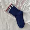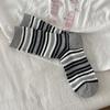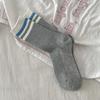 Grey Socks Cotton Mid-Leg Socks Double Needle Cotton Spring And Autumn Striped Pile Socks Collegiate Style Stockings
