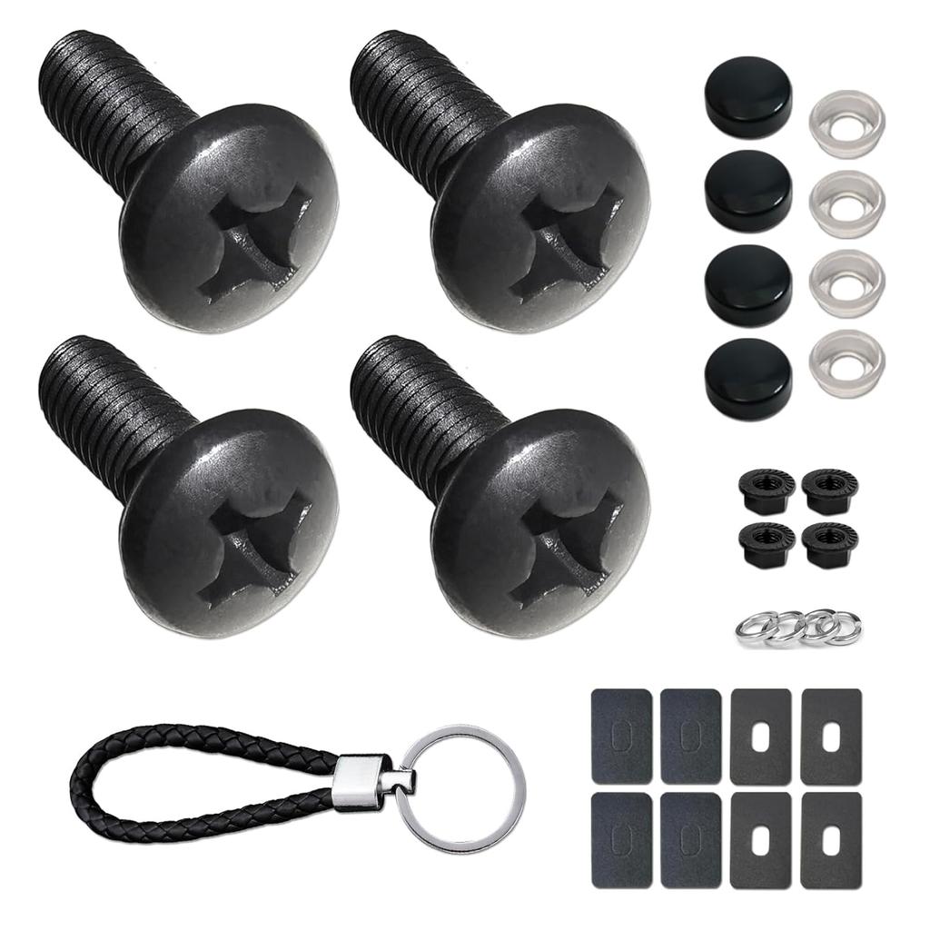 Black License Plate Screws- Rustproof Stainless Steel Car Tag Bolts, M6X16mm (1/4" X5/8") Fasteners Hardware- Phillips Machine Bolts Nuts Caps for